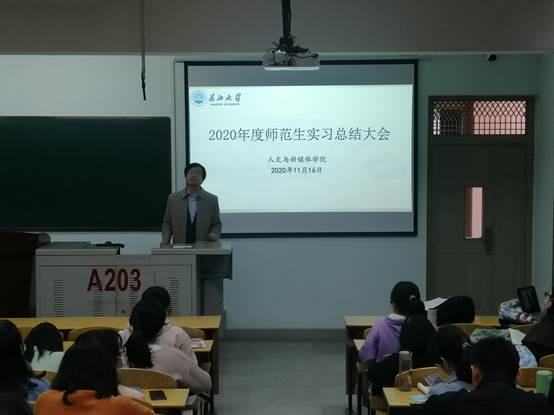 (通讯员 赵雅溶)2020年11月16日下午14:30,我院在13教A203召开了师范生实习总结大会、我院余劲东副院长、胡世先副书记、17级中文师范班杨蓉老师、辅导员何宁老师以及我院17级全体师范生出席了本次会议。本次实习总结大会由余劲东老师主持。