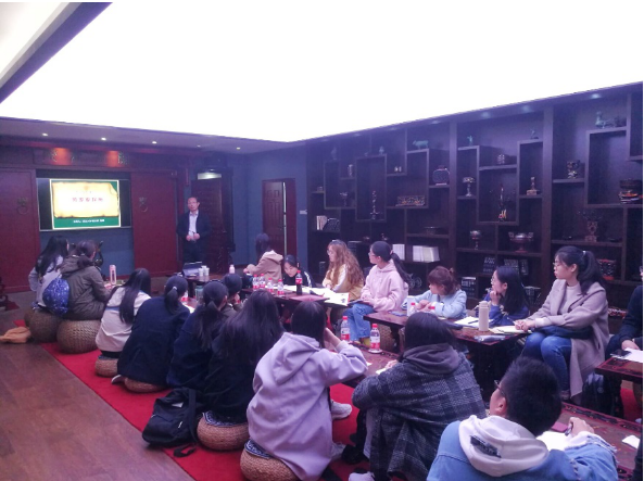 11月19日下午,课程建设项目负责人徐文武教授结合学员实地考察情况,为学员倾情讲述《熊家冢探秘》,引导学员们进行学术思考和探索。课程建设成员周家洪、卢川、向会斌老师也共同参与了教学活动。讲座伊始,徐老师从熊家冢的挖掘历史说起,谈到社会舆论方面对墓主人的各种推测。在介绍墓葬的位置时,他主要用地图展现处于当阳和荆州交界处的熊家冢,以文字作为辅助,图文并茂,形象直观。随后,徐文武教授展示了他如何通过考古资料、传世文献对墓主人身份进行推断的论证过程,旁征博引、论证严谨,最终得出熊家冢主冢墓主人应为楚昭王,附冢主人应为越王勾践的女儿越姬。