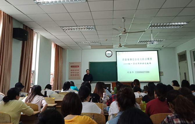 (通讯员 李娟) 4月26日上午,2019年中文系师范教育讲座第一讲在13教C区118教室展开,本次讲座的主讲嘉宾是荆州市北门中学校长、中学语文高级教师刘基华。文学院副院长李华平、教师应红艳、杨家海、张丽以及2016级全体师范生到场聆听了讲座。