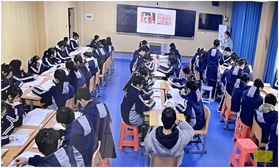 之后,参会人员共同走进宋东映老师的课堂,感受她是如何在具体的教学中实践UbD理论,以及这一理论在课堂实践中的使用效果。课程结束之后,江陵中学历史教研组长孙红财老师主持关于这一节课的课后研讨活动,他首先阐述了这一堂课存在的优势与不足,优势在于整节课思路清晰、环节紧凑、重难点突出、素材丰富、学生参与度高、课堂气氛活跃,但课程容量过大,对于部分内容的处理还需更加细化。随后,北门中学高一年级备课组长蔡永龙老师对这一堂课的利弊发表了自己的看法。