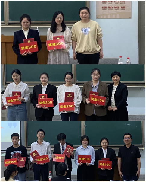 江陵中学教师宋东映、我系李义芳老师分别对1-5组、6-11组选手表现做出点评,并提出了针对性意见。其他评委们还提出,师范技能竞赛是一个从技巧到技能到技艺的一个过程,应从立意构思、教学语言、教态等方面磨练教学技能。经过激烈角逐,宁静、费可欣荣获一等奖;谭诗雨、李思涵、陈江燕、谯佳颖荣获二等奖;崔敏、孙卫、石环宇、张欣怡、苏再虎荣获三等奖。评委老师们为获奖参赛选手颁发了荣誉证书和奖金,并表达了对他们的殷切期望。