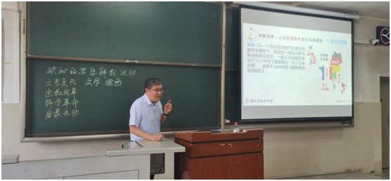 (通讯员 罗欢欢 张锋军)为顺利推进省级教师教育综合改革实验区建设工作,搭建好williamhill中文教师中小学工作站、荆州名师驻williamhill中文工作站合作项目平台,把荆州名师驻williamhill中文工作任务落到实处,训练和提升师范学生的教学技能。2023年4月16日上午9:00,历史系在主教107教室举行了主题为“如何上好一堂高中历史示范课——以‘欧洲的思想解放运动’为例”的示范课,主讲人为荆州中学高级教师赵树杰。历史系教师李义芳、卢川、余静贵、李芳、赵标、周中梁,以及2021级全体本科生、部分学科历史2020级研究生参加了本次讲座。