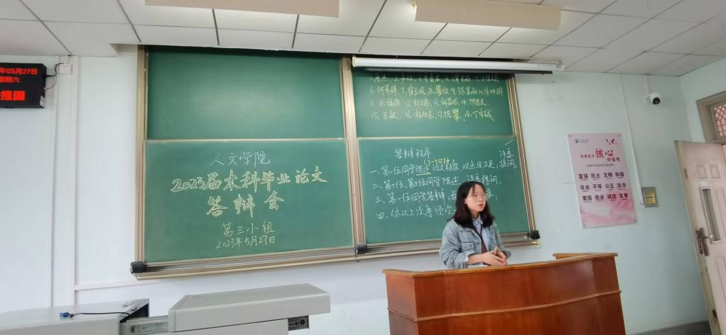 历史系2023届本科生毕业论文答辩分为三个答辩小组分别进行。答辩小组长分别由徐文武、陈力、李义芳担任;答辩委员、答辩秘书分别由历史系教师担任。各组答辩按照答辩程序进行,在答辩陈述环节,学生们首先针对论文的框架、思路、创新点以及不足之处分别进行简要汇报,答辩教师根据学生的论文,提出问题,之后学生通过整理和准备,回答答辩委员的问题。经过各小组答辩委员会的商议,拟推荐熊伟恒、何益龙、陈思文等6位同学的毕业论文为校优秀论文。