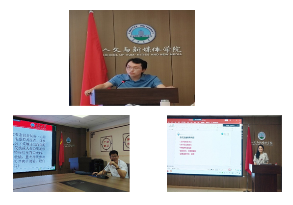 7月3日上午,首场讲座由李征宇老师开讲,他主要从中国古代文学史的重要内容、复习方法和答题技巧三个方面为同学们进行了指导。强调要以史为纲,以章节目建构体系,提高对文学发展史的理解,其中还以“苏轼背汉书”为例进行具体的背诵方法指导,生动有趣。之后,吴新平老师从中国现当代文学的专业简介和备考复习为同学们展开介绍,并提醒大家明确自己的目标。从兴趣出发,不能忽视对重要作家作品的研读,特别指出“非功利性文学储备”的重要性,且分享了自己的考研经历,在考研的过程中要注意身心契合。肖祥老师从文艺学的专业特点入手,逐步为同学们介绍了文学理论、文学批评、西方文论及中国文论的相关知识,强调要以多元性和历史性的眼光去看待相关理论,且以“文本”和“意境”两个概念为例详细说明。在具体答题方面建议同学们注意答题升阶和相关真题的归纳整合。刘金勤老师详细介绍了关于古代汉语、现代汉语及语言学三门专业课程的基本框架,在讲座过程中时常以贴近生活的事件为例,引起同学们的共鸣。不但为同学们理清了各方面的重点知识,并且推荐了一些阅读书目和网络课程资源。秦鹏举老师以开阔的文化视野引领同学们进入比较文学与世界文学的领域,讲述了学科具体研究内容和方法,介绍了近年前沿学术问题,且借助相关代表性的作品及流派帮助同学们理清复习思路,指出建立整体观念的重要性。讲座过程中东西方典型案例,作家评论信手拈来,开阔了同学们的视野。各位老师都怀着殷殷寄语,在结束时预祝同学们考研成功上岸。