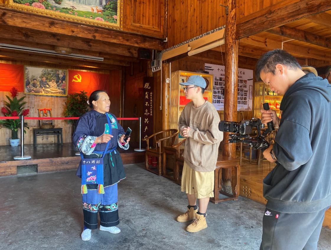走进精准扶贫的“首倡地”—花垣县十八洞村,师生们漫步苗寨,考察苗寨民俗、民情、民风,通过采访当地苗绣技艺传承人石顺莲,计划制作一部反映十八洞村苗绣传承的微纪录片。师生们边走边拍,用镜头记录下这个脱贫攻坚的示范村,从主题选取、叙事视角、内容表达、视听呈现等方面,真实地反映十八洞村老百姓对美好生活的向往与追求,讲好中国乡村振兴的故事。