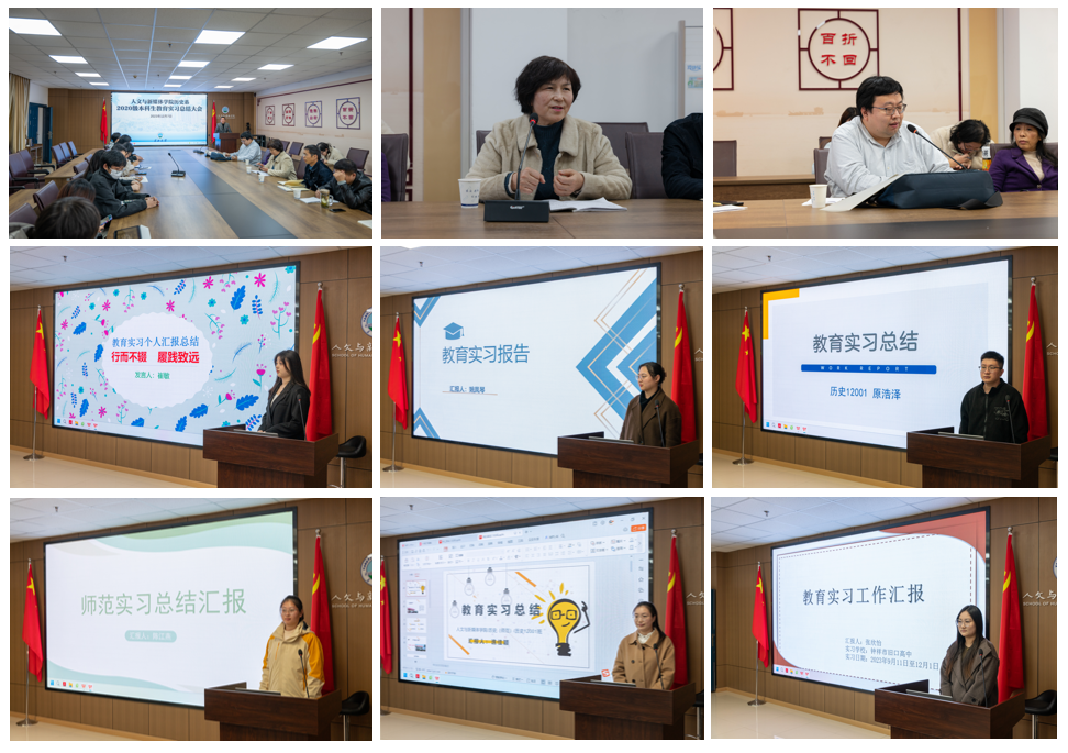 (通讯员 熊柳苏)“教育实习”是师范教育重要环节之一,是全面提升学生师范技能的实践课程。12月7日下午,历史系在学院705会议室召开2020级本科师范教育实习总结大会。教师李义芳、桑俊、周中梁、赵标、王谷、向会斌、李芳、徐伟,以及2020级全体本科生参加了会议。会议由卢川主持。
