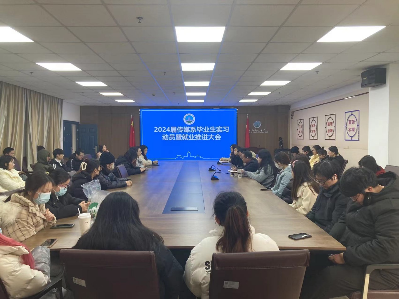 为进一步提高应用型人才培养质量,确保2024届毕业生实习工作正常有序开展,切实提高学生的实践能力和专业水平,增强学生的社会适应能力,帮助学生顺利就业,近日,学院召开了传媒系毕业生实习动员暨就业推进大会。本次会议由传媒系教师纪希主持,副院长柯艺、党委副书记竺正海、传媒系教师刘润润及辅导员陈娟出席,2024届传媒系全体同学参加。