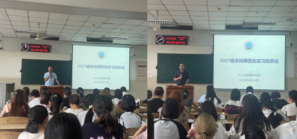 (通讯员 王康悦)为更好地开展师范专业教育实习工作,引导师范生进一步明确师范实习的内容和要求,8月29日下午,学院2021级本科师范生实习动员会在12教202教室举行。大会由中文系章芳老师主持,学院副院长柯艺,学院党委副书记竺正海,历史系教师李义芳、卢川,2021级本科生辅导员彭超及2021级全体本科师范生参加会议。