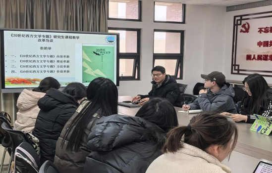 (通讯员 牟群瑶)2025年2月20日下午,主题为“《20世纪西方文学专题》研究生课程教学改革刍议”的学术讲座在文科楼701会议室举行,由秦鹏举老师担任主讲人,二十余名研究生和部分老师参加。