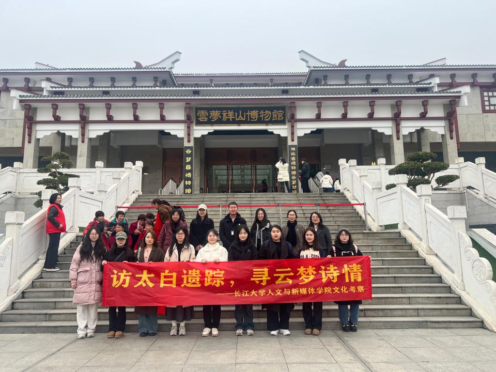 (通讯员 张雨欣 关其其)为深入挖掘楚文化底蕴,感受文学的魅力,3月9日,我院组织24级9名研究生赴湖北省孝感市开展文化考察。此次活动由副院长李征宇教授带队,吴桂美、杨伟业等教师共同参与,通过实地探访李白纪念馆与云梦博物馆,构建起“文献研读+现场教学+文化体验”的立体学习模式。