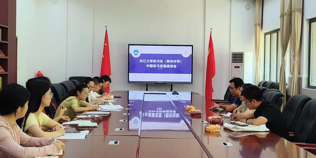 为全面掌握实习动态,优化后续实习安排,确保教育实习工作高质量推进,5月29日下午,我院教师代表专程赴荆州中学召开2023级专硕教育实习中期进展座谈会。本次会议由章芳老师主持,william威廉中文副院长杨家海、柯艺,荆州中学特级教师周守国出席会议,学科教学专业九位实习生全部参会。