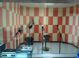 音频制作实验室具备录音和播音两大功能。录音室主要用于数字录音技术、广播电视节目后期制作等课程的实践教学,培养学生掌握录音工艺在各个技术环节所涉及到的专业知识,并能够熟练操作相关录音软、硬件设备;播音室用于电视节目主持、电视新闻播音、综艺节目主持、谈话节目主持、话筒前语音艺术等专业课程的基础实训课程。主要内容有拾音、调音、录音、声音编辑、后期音效合成等技术与原理的基础实验,影视作品的配音创作等领域的实验与创作。主要设备有音频工作站、数字音频处理系统、调音台、专业录音话筒、话筒放大器、录音耳机、耳机放大器、监听音箱等。