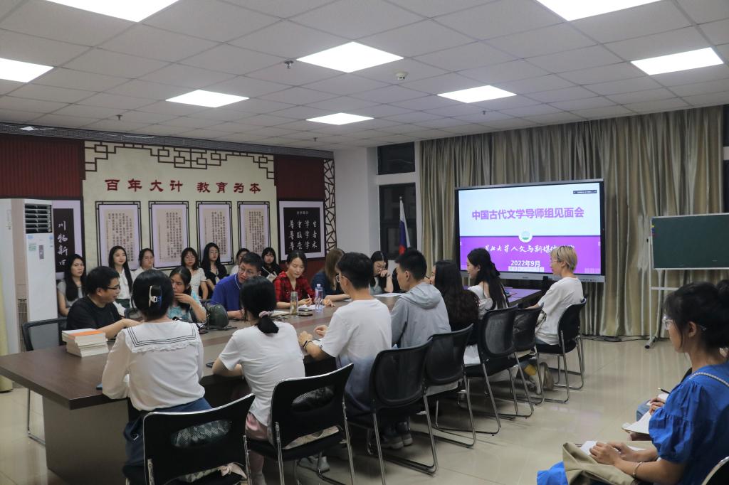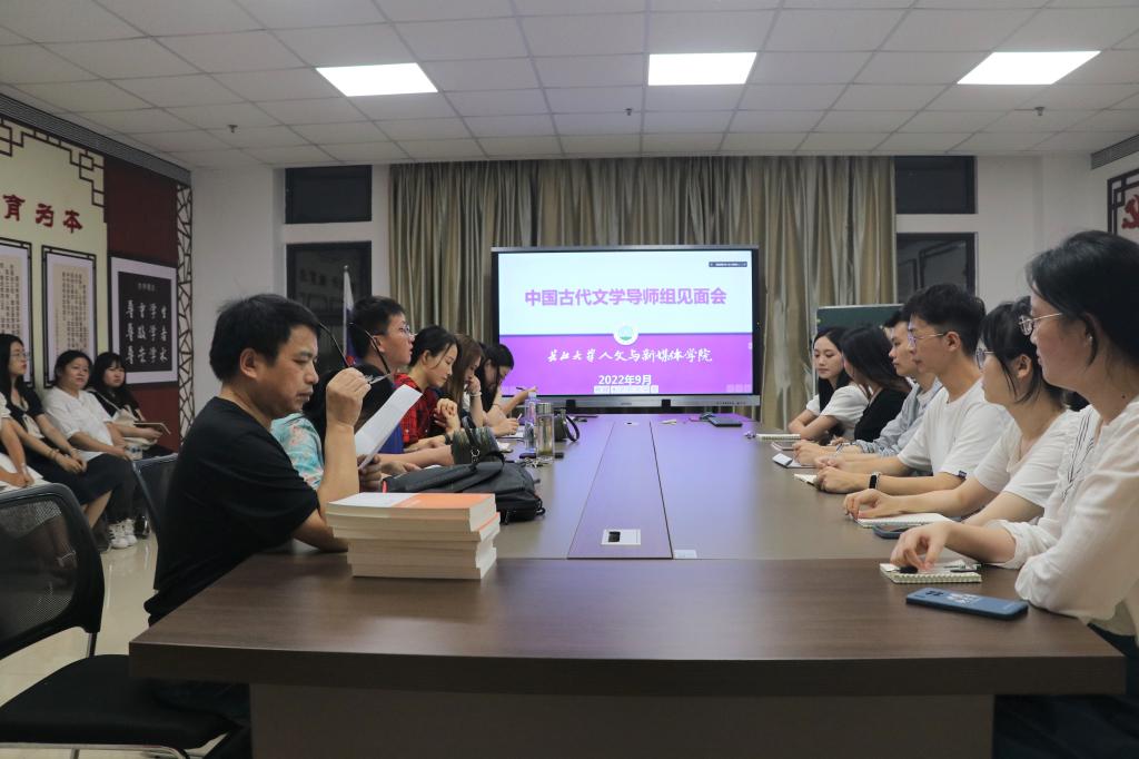 9月13日晚,古代文学教研室在文科楼701举行22级研究生见面,吴桂美、李征宇、李根亮、杨名、章芳、袁咏心、杨伟业等老师和24位22级古代文学方向的研究生参与本次会议,会议由李征宇老师主持。