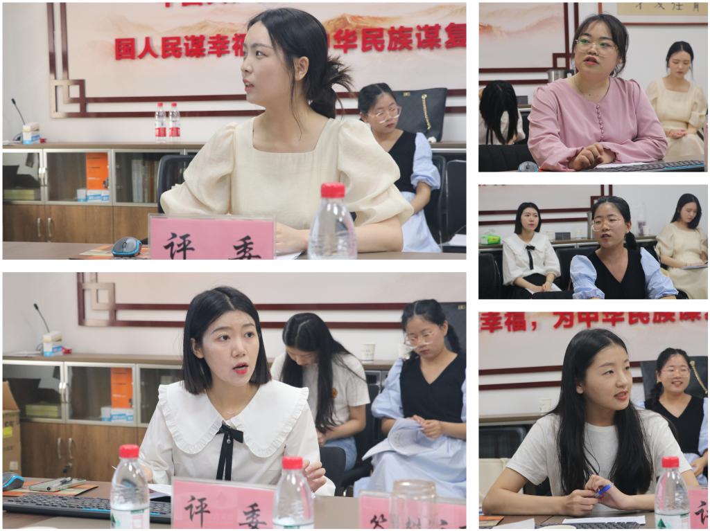 在答辩会上,2023届学科教学(语文)硕士研究生——戴媚媚、黄静雨、曹小女、周求玉、刘敏洁5位同学通过PPT展示,围绕论文研究背景、研究意义、研究思路、方法与创新、研究内容与结论等方面进行了简要陈述。5位同学的研究均来源于自身的语文教学实践,立足于语文教学现状,从初高中语文阅读、写作与主题教学等角度汇报了自身的思考与发现,展现了良好的语文教学素养。在专家提问环节,答辩委员按照毕业论文规范标准就同学们的论文进行了点评和提问,并就论文不足之处,提出进一步修改建议。参与答辩的硕士研究生们认真听取老师意见,并对相关问题进行了解答。整个答辩会有条不紊地进行,取得了良好效果。