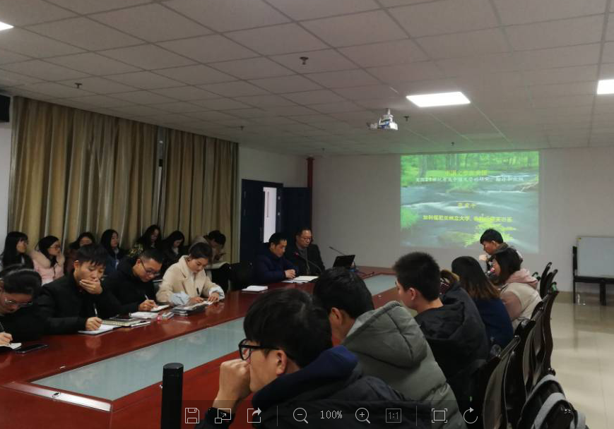 (通讯员 李娟)2018年12月11日下午2:00,以“中国文学在美国”为主题的讲座,在文科楼会议室举行,美国加利福尼亚州立大学奇科分校英语系张爱平教授担任主讲嘉宾,李华平副院长、刘金勤等老师和部分研究生、中文系本科生到场聆听了讲座。