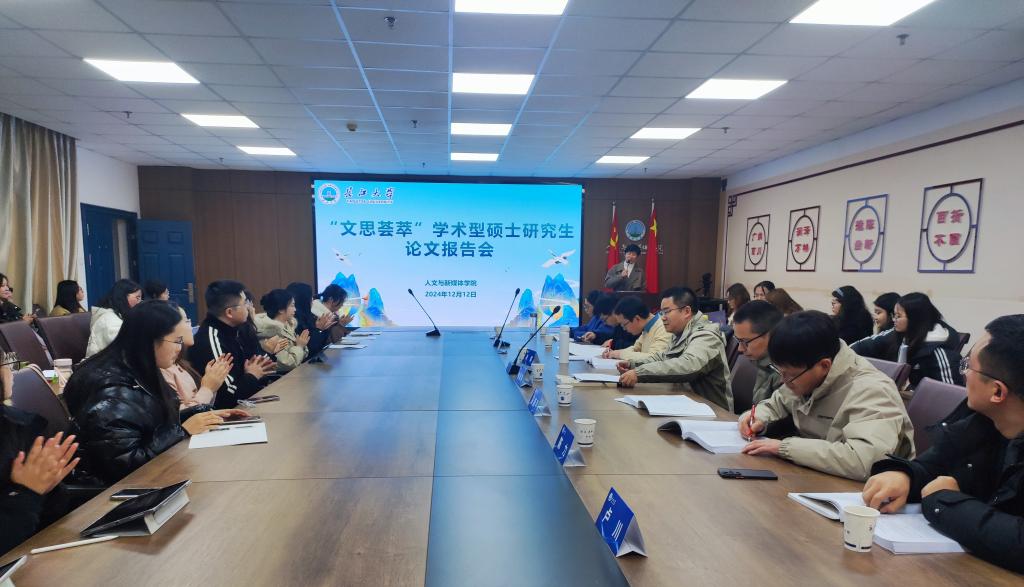 (通讯员 李雪琳)为培养和锻炼研究生的学术论文写作能力,提升研究生的科研素养,12月12日,学院2024年度“文思荟萃”学术型硕士研究生论文报告会在文科大楼705会议室举行。学院副院长杨家海出席报告会,导师代表陈力、吴桂美、卢川、秦鹏举、肖祥、吴新平、周中梁和2023级全体学术型硕士研究生、2024级部分学术型硕士研究生参加此次报告会。