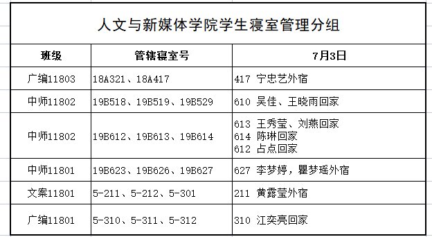 7月3日,我院组织学生干部对18、19级的宿舍进行每日寝室安全检查,现将查寝结果公布如下: