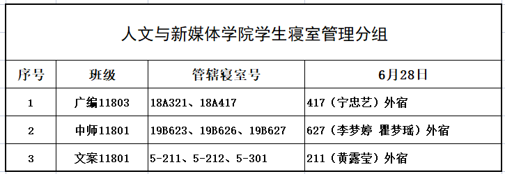 6月28日,我院组织学生干部对18、19级的宿舍进行每日寝室安全检查,现将查寝结果公布如下: