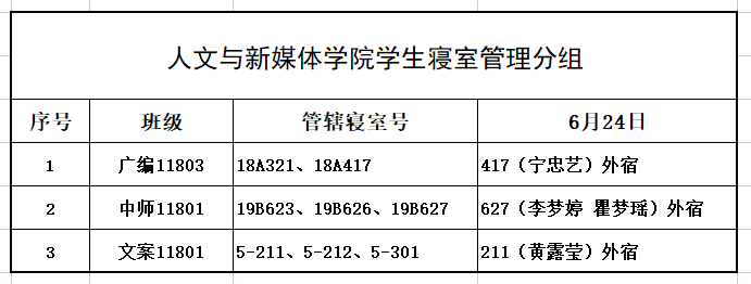 6月24日,我院组织学生干部对18、19级的宿舍进行每日寝室安全检查,现将查寝结果公布如下: