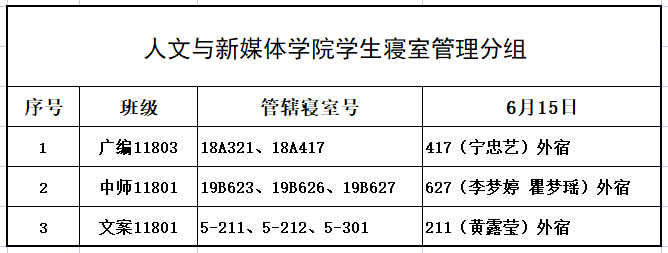 6月15日,我院组织学生干部对18、19级的宿舍进行每日寝室安全检查,现将查寝结果公布如下: