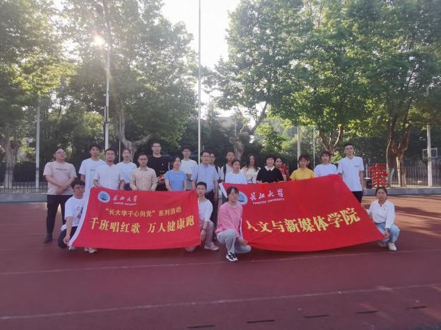 (通讯员 李冬芹 李悦)庆建党百年,树优良学风。6月7日早上,人文与新媒体学院东校区田径场举行“千班唱红歌,万人健康跑”活动暨升旗仪式。人文学院院长何世龙,学生工作办公室何宁老师,2018级和2019级本科生参加了活动。