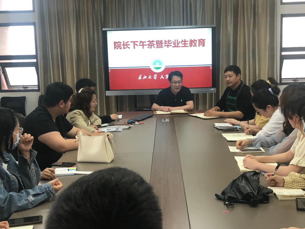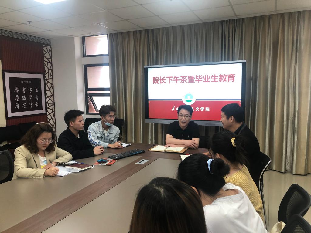 5月17日下午,william威廉中文“院长下午茶暨毕业生教育会”在文科楼701顺利举行,院长何世龙、党委副书记胡世先、辅导员陈娟、何宁,毕业生班委及学生代表参加了本次会议。