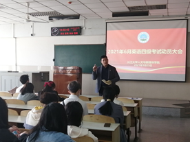(通讯员:王权)为帮助和鼓励同学们顺利通过英语四级考试, 3月25日在12教102教室召开英语四级动员大会。学院党委副书记胡世先、兼职辅导员贺康锋、何力,及18、19级同学参与了本次大会。会议由何力主持。