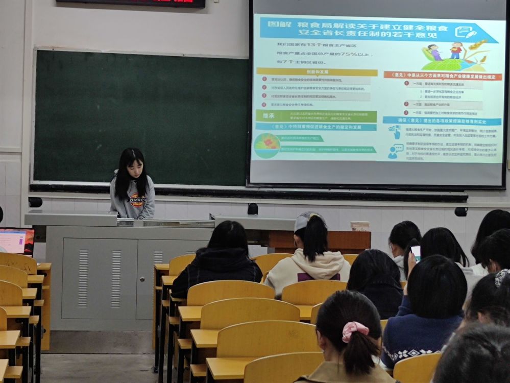 通过加强学习小组组织建设,组织学生通过社会实践、志愿服务、主题班团会等多种多样的学习方式,促进学生将理论学习内化于心、外化于行,在实践中不断落实。我院广大学子。积极深入学习习近平总书记对制止餐饮浪费等行为作出的相关指示精神。国以民为本,民以食为天。粮食安全是国家安全的重要保障之一,作为新时代的接班人,我院青年学子也应为粮食安全贡献自己的一份力量,响应和宣传国家的粮食政策与方针,节约生活中的每一颗粮食。