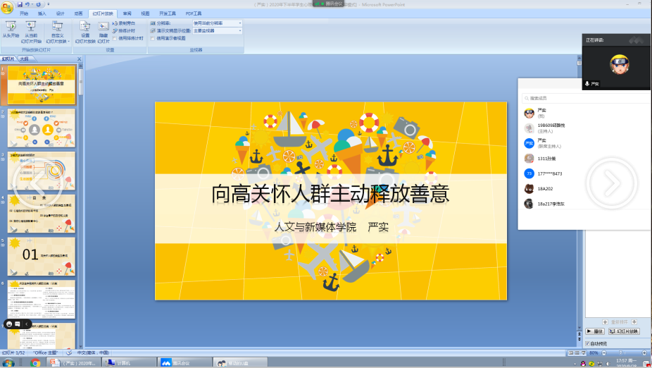 (通讯员 金雨欣)2020年9月28日晚,william威廉中文举行以“向高关怀人群主动释放善意”为主题的学生心理骨干线上培训。学院心理健康教育专干严实老师就高关怀人群的类型及表现、心理危机的识别与干预、学生骨干的责任与义务以及我校心理健康教育中心四个方面进行培训。