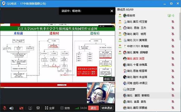 本次系列班会采用腾讯会议APP召开。主题班会开始前,各班班主任对本班学生进行点名和签到,确保所有学生到会。主题班会从返校安排、返校前的准备、报到流程、校园管控三阶段和学费缴纳五个方面展开,各年级辅导员和班主任为大家重点讲解了分批返校和校园管控三阶段的具体安排,强调了返校前必须的14天连续健康打和按流程返校,并将“申请—审批”制度的具体做法向学生进行了说明。