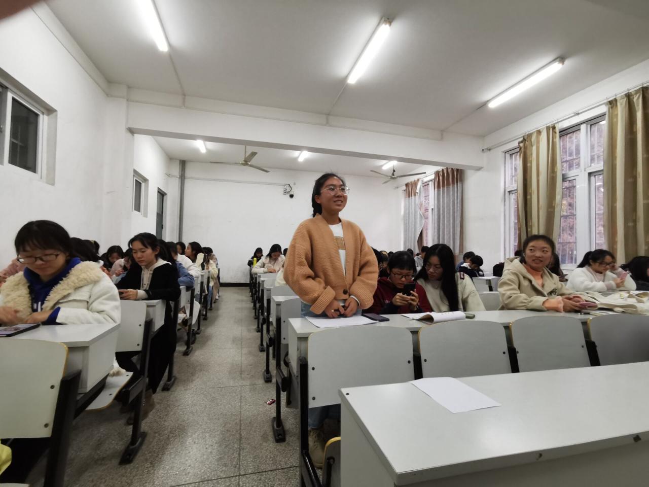 在主持人向同学们提问当代大学生应该如何合理规划自己的时间时,文史2班学习委员李渊举手回答道:“当代大学生应该自律,好好学习,不断提升自己,培养自己解决问题的能力,学会如何更好与他人交往,同时,在生活上,我们也应学会独立,度过充实而有意义的大学四年。”