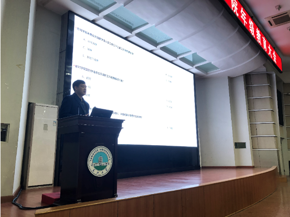 会上,辅导员严实、万竹君就期末诚信考试、课堂考勤纪律、寝室安全卫生与人际、学习目标与评价体系等,向同学们做了详细的介绍。党委副书记胡世先作大会总结,他要求同学们严格按照辅导员提出的各项要求严格执行,努力学习,诚信考试,力争上游,同时,胡书记还告诫同学,学好知识的同时,多关心关注各类信息,提升自己各方面的综合素质,以适应社会对人才的需求。