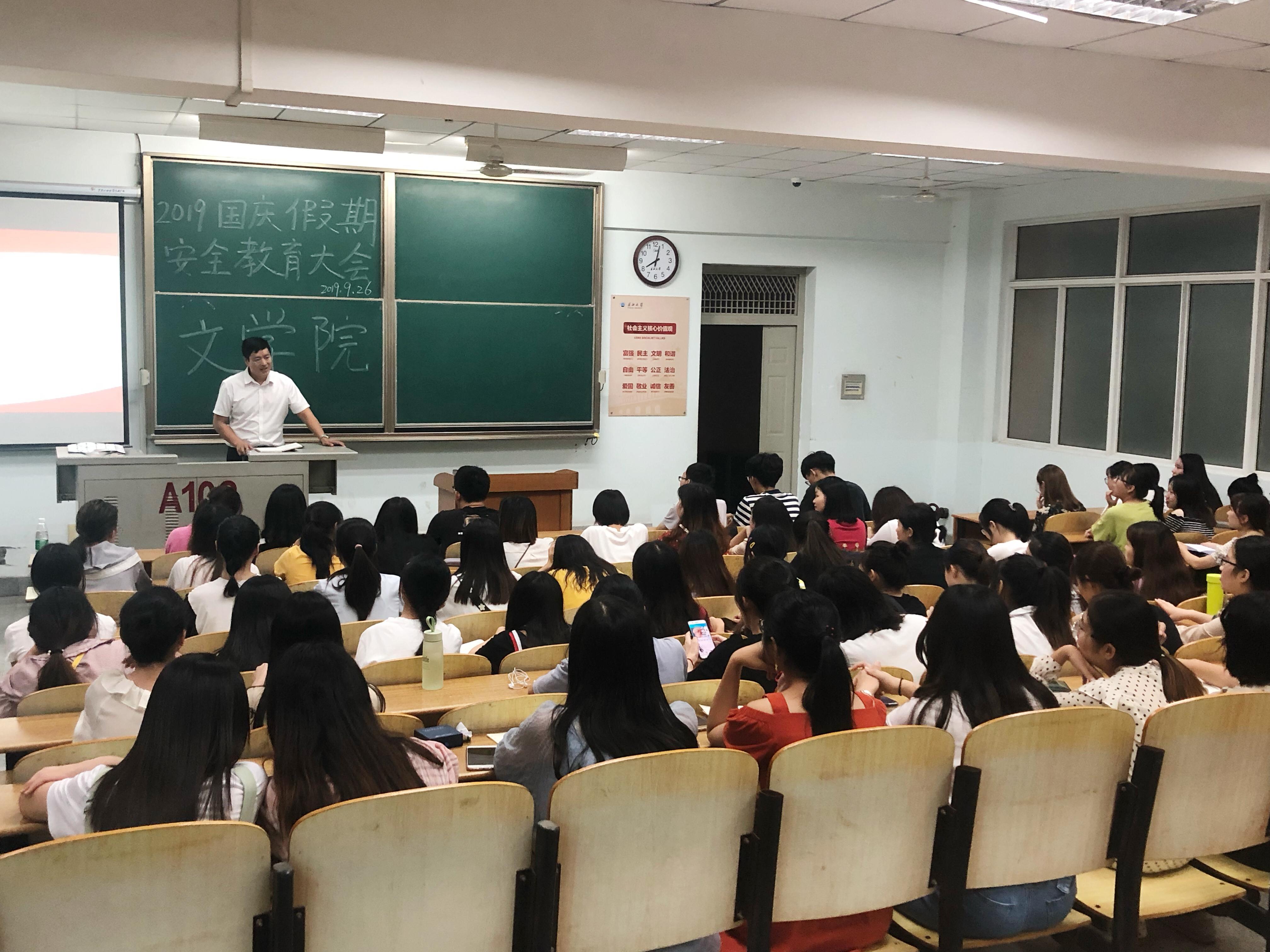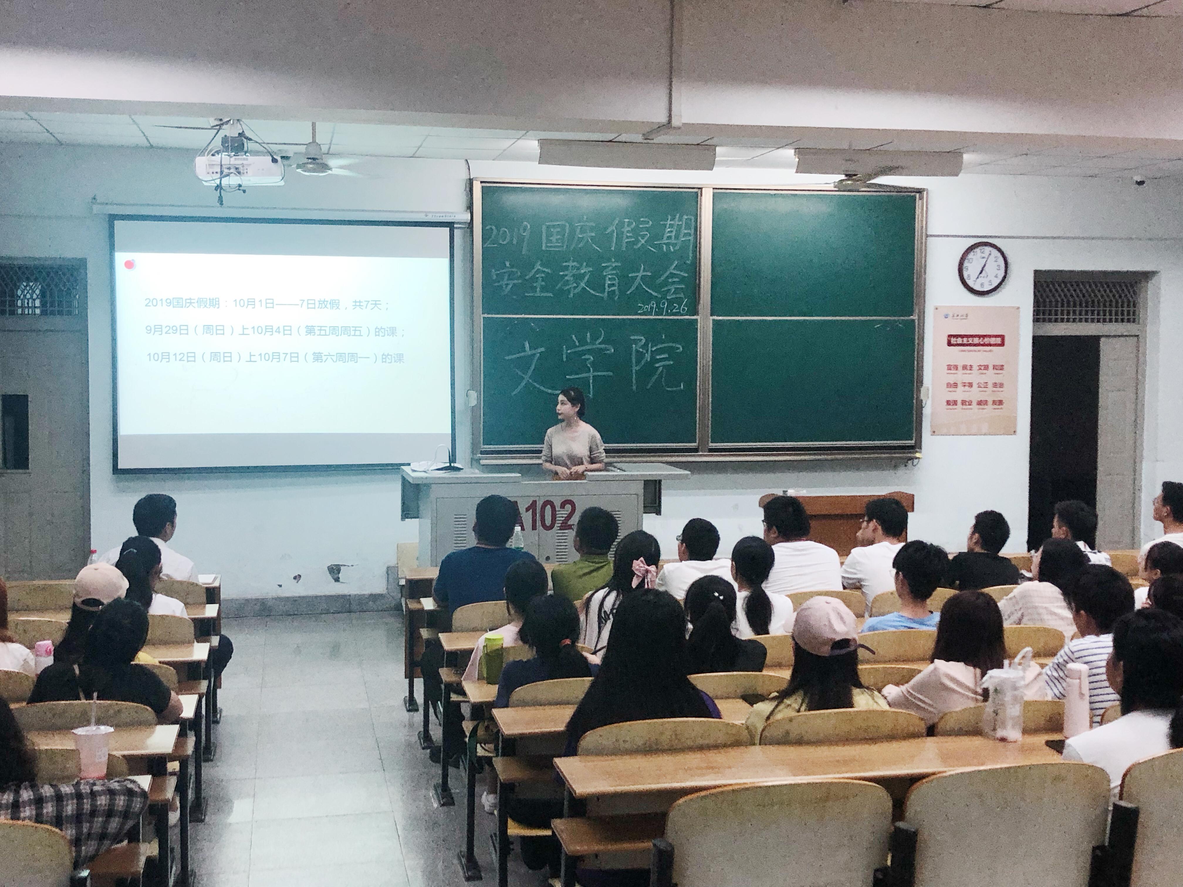 为进一步落实学校关于做好国庆节假期学生安全工作的通知要求,同时为了提高同学们的安全防范意识,9月17日至28日,我院分年级在东、西校区召开国庆假期安全教育大会。大会分线上教育和线下教育两种形式、由相应年级辅导员主讲。