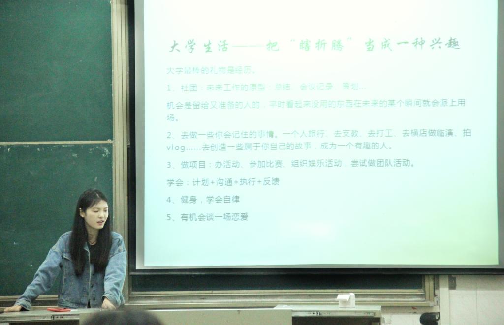 (通讯员 田蓉蓉 摄影 蒋精懿)榜样的力量催人奋进。5月12日晚七点,西校区2教T1内举行了《学业生涯规划——兴趣与内驱力》的主题讲座,本次讲座针对18级广编、广电专业大一学生。讲座邀请了今年分别被北京大学和华中师范大学录取的15级学生:柴巧卓、黄宪成前来传授经验。他们结合自己本科学习经历,面对面分享自己大学四年的学业规划。