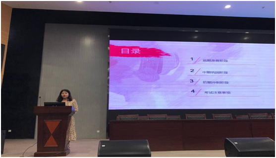 李思源同学在经验分享中强调养成良好习惯的重要性,要将四级备考融汇在学习生活中,例如在休息时间练习听力泛听、寝室里组成打卡学习小组、利用零碎时间背单词等等。李娟同学则侧重四级考试技巧和题型分析,她结合自己的经验对每一个题型进行深入分析并提出了切实可行的学习策略。钱雨同学从作文听力、阅读翻译的分值分配切入更为直观地讲述了科学的做题流程和技巧,并分享了一些她积累的好词好句和英语学习的app。田彤同学的经验分享分为知己知彼、循序渐进和放宽心态三个方面,强调了好心态的重要性,需要在宏观上把握和了解四级考试,同时也需要分析自己的薄弱点进行有针对的练习,这样则会达到事半功倍的效果。