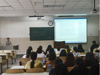 2018年9月,文学院分团委在校党委的领导和校团委的指导下,密切配合,全面实施,有条不紊,逐层逐级地开展好我院本月主题班团会活动。我院分团委积极响应校团委的统一部署,适应新的形式,突出新的特点,求创新,做实事,于2018年9月5日至2018年9月30日在全院范围内广泛展开了“乘新时代东风 放飞青春梦想”主题班团会活动。