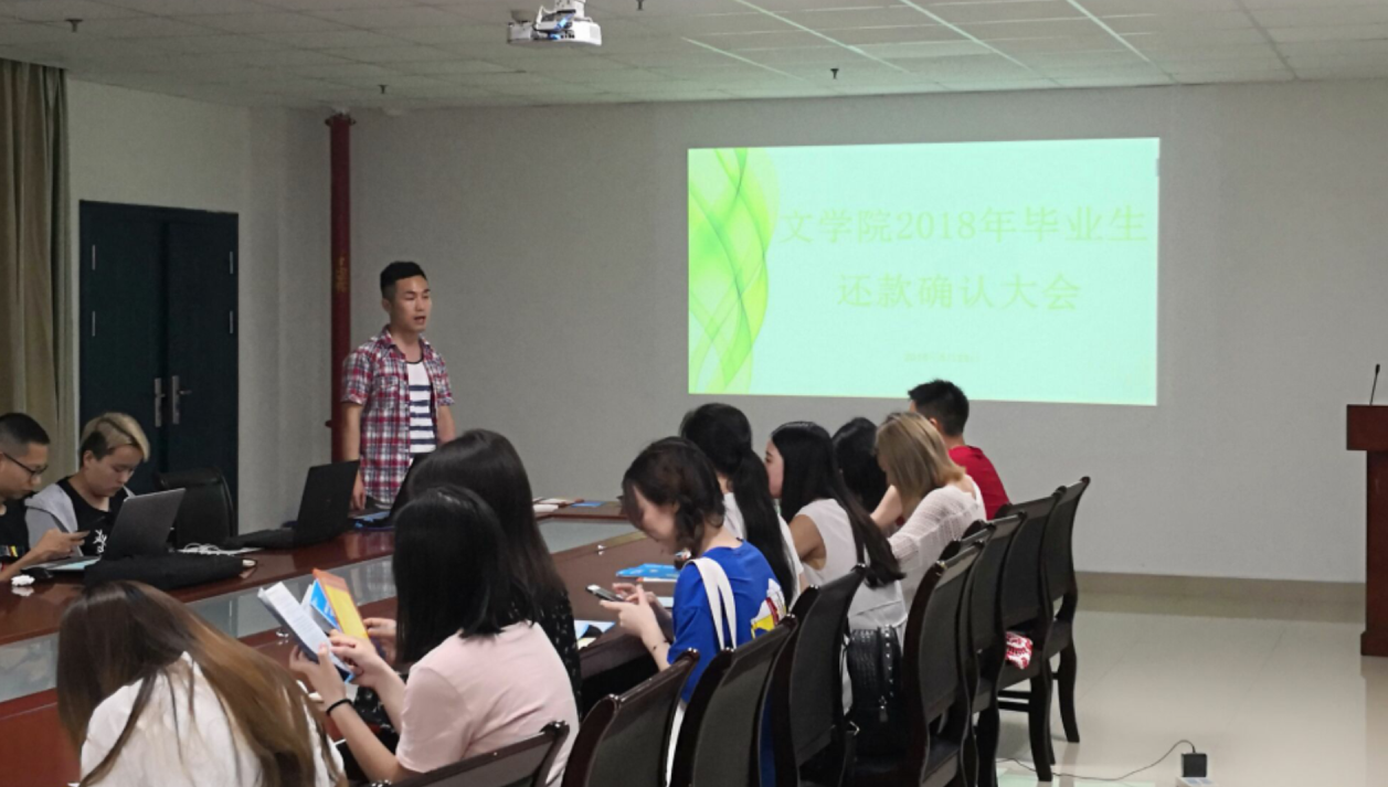5月29日晚6:30,文学院2018年毕业生信用贷款还款确认大会在文科大楼705举行。
