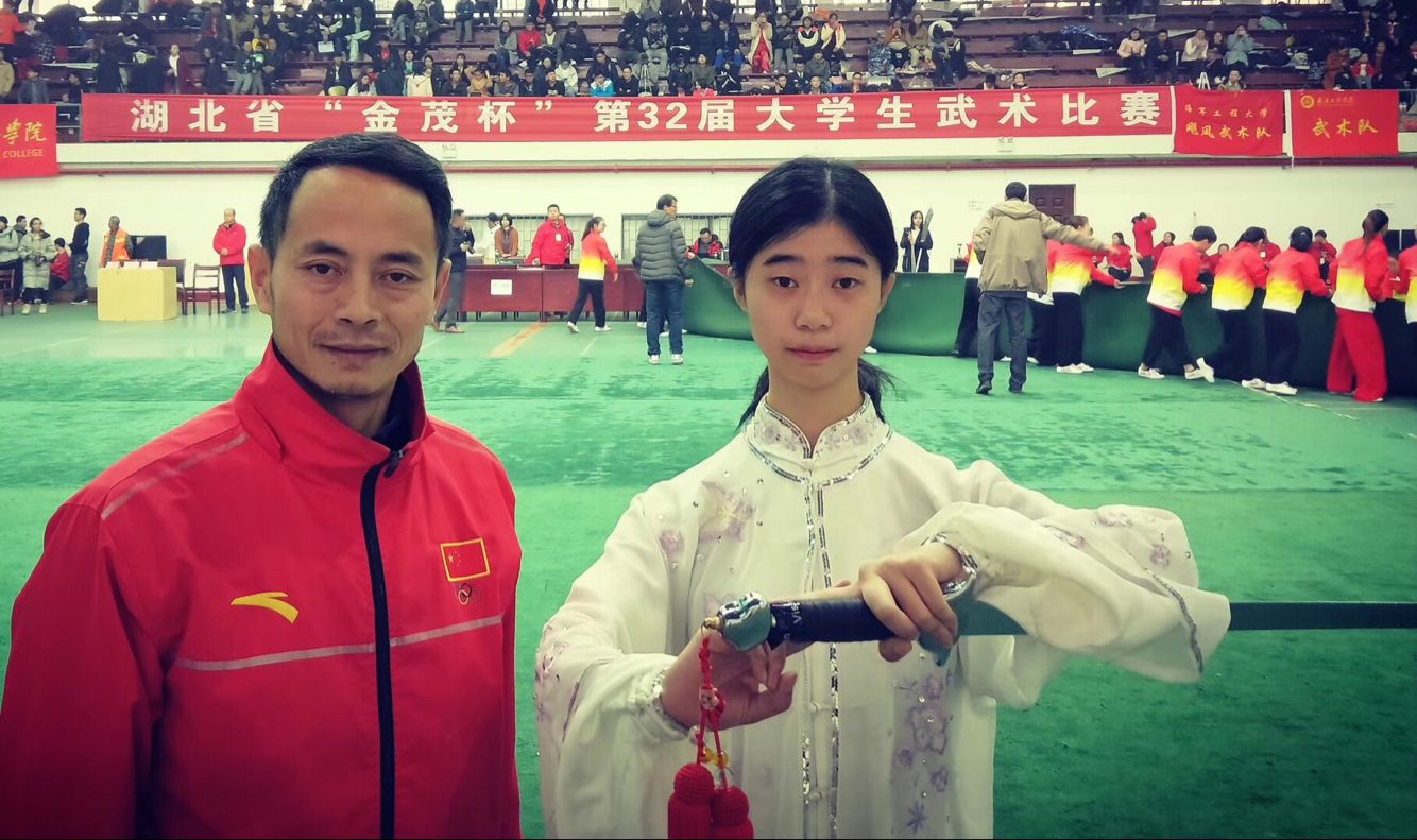11701班学生舒可欣、中文11503班学生田润在武术教师张高峰博士、陈连朋老师的带领下参加此次比赛。其中舒可欣凭借扎实的基本功和出色的临场发挥斩获佳绩,一举获得太极剑第一名、长拳第二名等多项殊荣。