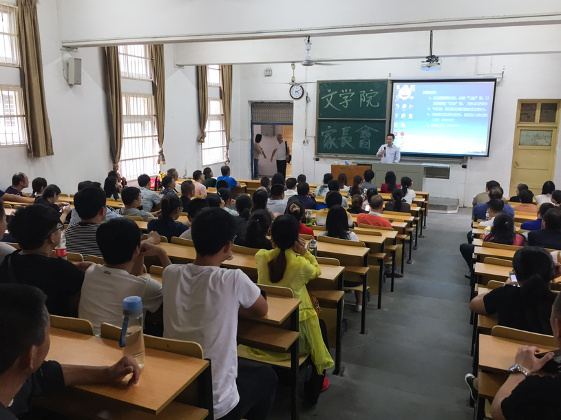 9月6日下午,文学院师生家长见面会在西校区2教T1教召开,党委副书记周书航、辅导员万竹君及部分大一新生班主任为家长及新生进行现场答疑解惑。周书记首先介绍了文学院的发展历史以及各专业就业前景和学生择业方向,在对比中学教育和大学教育时提出,大学是开放式自主式的学习,家长要配合孩子助其学会自立自强,让学生更快地成长,最后强调作为长大学子要有“奔向长江,汇入大海”的大气魄,敢担大事,勇做大事,家长们也要和老师一起相信孩子,相信祖国的未来。