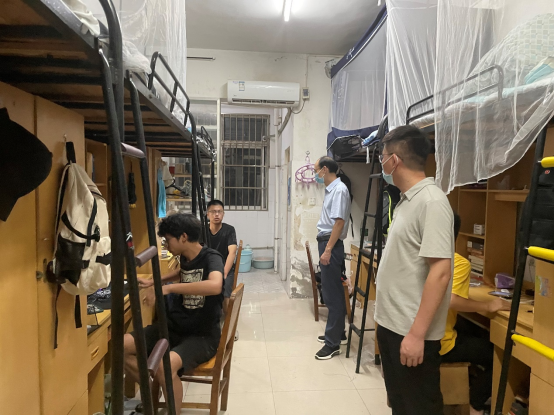 31日晚9时,学院全体领导前往搬迁后学生宿舍看望学生,查看学生们的入住情况,了解学生们在新宿舍区的宿舍生活并记录同学们的问题,以便及时进行解决,同学们对新宿舍良好的环境都感到非常满意。新学期,新面貌,新气象,此次搬迁工作顺利完成,为同学们在新校区的学习生活开了个好头,学院学子也将继续保持优良学风,开启新学期的学习生活。