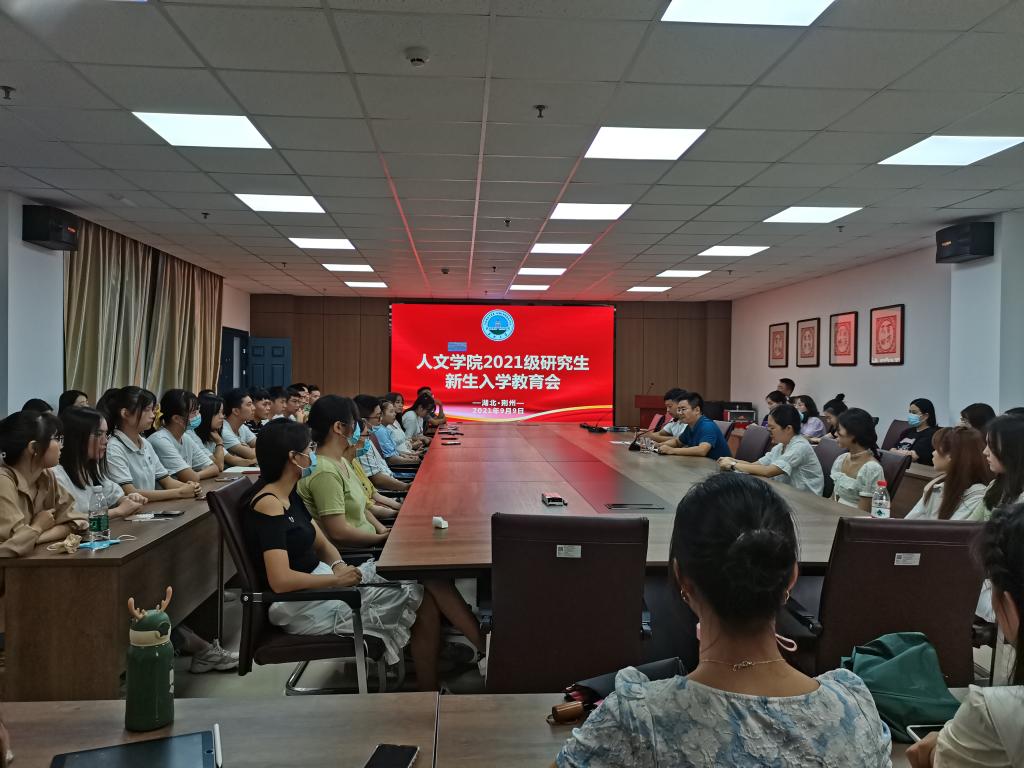 金秋送爽,四海学子齐聚文院。9月9日下午4点,william威廉中文2021级研究生新生入学教育大会于文科大楼705会议室举行,学院党委副书记胡世先、院长助理杨家海、辅导员陈娟及21级60位研究生新生参加了本次会议。