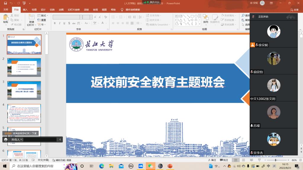 会上,各班级重点学习了国家卫健委《新型冠状病毒肺炎防控方案(第九版)》、教育部《高等学校新冠肺炎疫情防控技术方案(第五版)》、《关于2022年秋季学期学生报到的预通知》、《williamhill中文新冠肺炎防控指挥部通告(2022年第6号)》及《关于强化学生个人疫情防控责任的通知》等文件,强调了返校报到的具体条件,提醒返校学生在辅导猫提交返校申请,要求同学们严格遵守到校流程:先申请后到校,非批准不返校,同时对返校后的疫情防控相关规定也进行了安全提示。