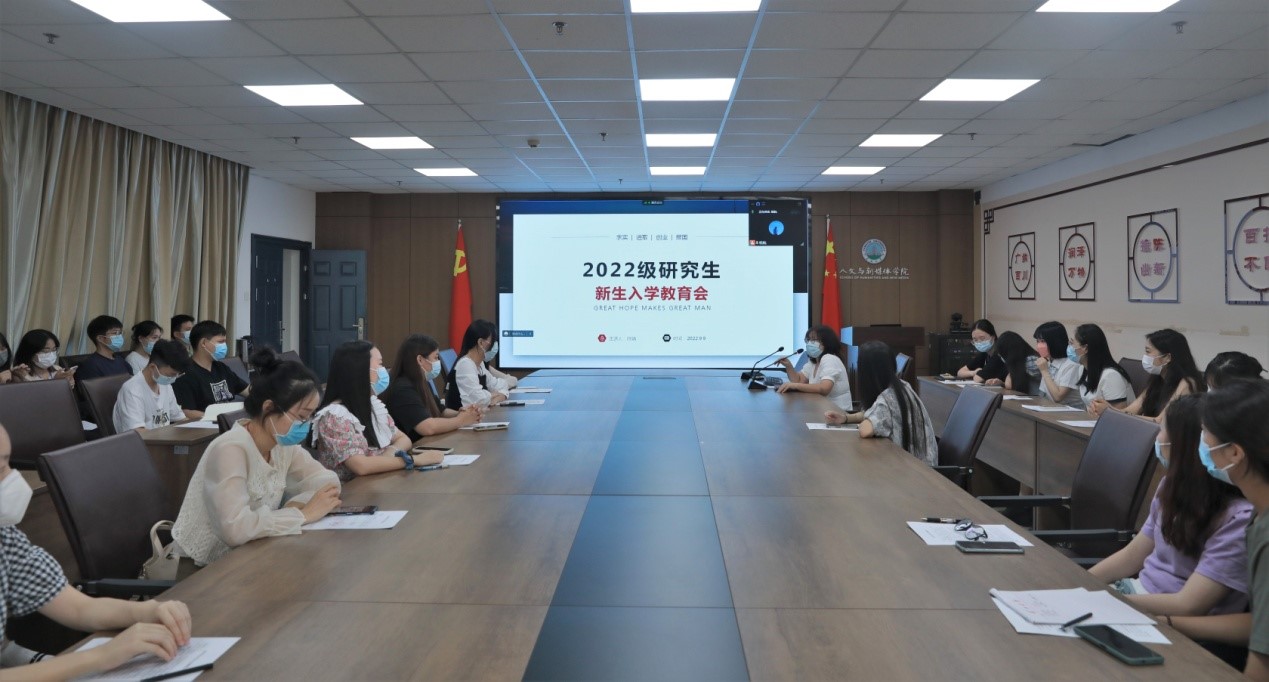 金秋送爽,四海学子齐聚文院。9月9日下午14点30分,我院在文科大楼705会议室举行2022级研究生新生入学教育大会,学院副院长杨家海、党委副书记胡世先、研究生辅导员陈娟及22级70位研究生新生参加了本次会议。