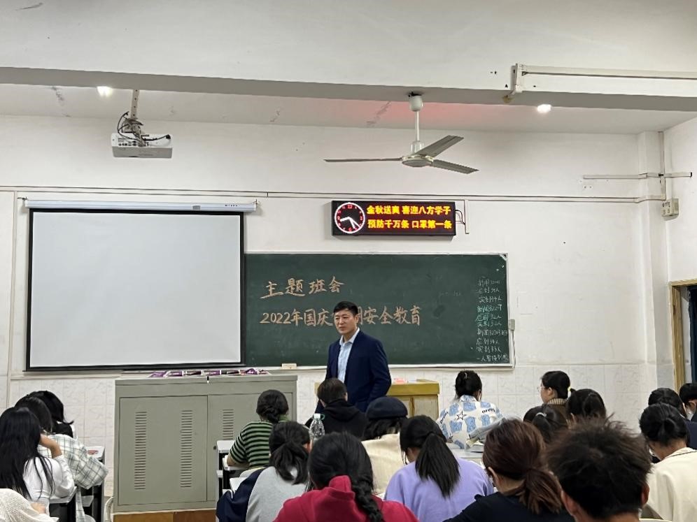 会议首先强调国庆放假期间学校的课程调整和管理制度安排,然后由班主任老师进行疫情防控、防诈骗、防火、防溺水、防盗等安全注意事项和心理健康教育。胡世先老师则对规范早自习及晚自习纪律作出要求。他希望全体2022级新生要积极适应大学学习环境,合理制定大学生涯规划,扎实将计划付诸行动,努力成长为一名优秀的长大学子。