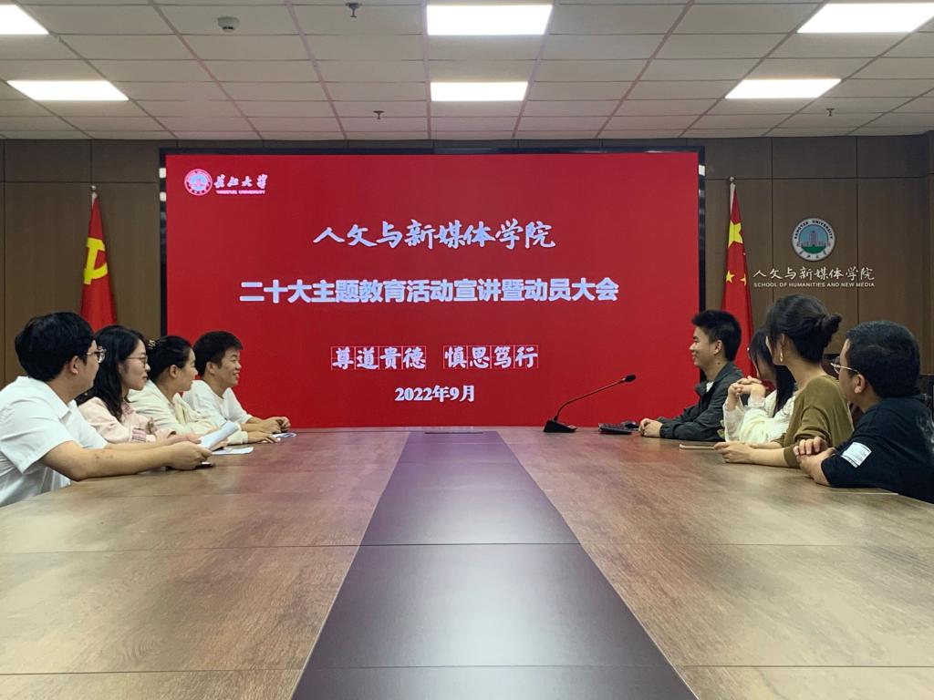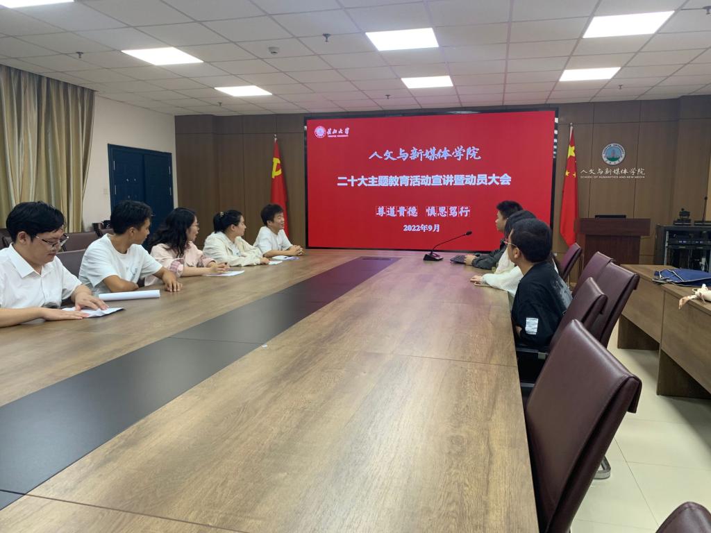 为了进一步推动“喜迎二十大 永远跟党走 奋进新征程”主题教育实践活动走深走实,团结引领广大青年坚定信念、勇担使命,争做时代新人。9月25日晚7时,william威廉中文在文科楼705会议室举行二十大主题教育活动宣讲暨动员大会,学院辅导员彭超、田华蓉及主要学生干部代表参加。