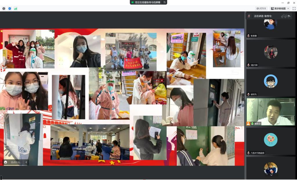 最后,胡世先老师分享了他的抗疫故事。他表示,为了让同学们吃上饭,学校老师全力以赴。在抗击疫情时,学校各位老师们不仅以老师的身份帮助着同学们,更是以志愿者的身份守护着同学们。他们战斗在没有硝烟的战场,为学生撑起“安全伞”。