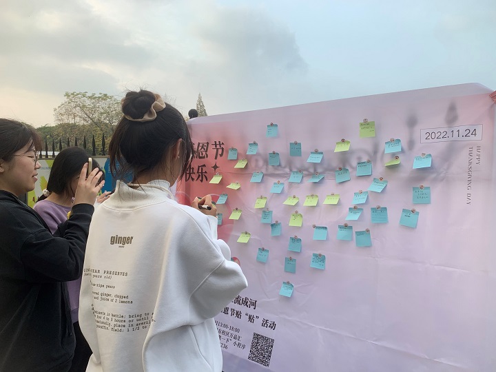 冬阳温暖,年关将近。2022年11月24日至2022年11月27日,学院青支队开展感恩节主题主题志愿服务活动。活动主要由学院青支队负责组织实施,分线上和线下两种方式。此次活动值班志愿者共18人,共有14个学院共573人参与。