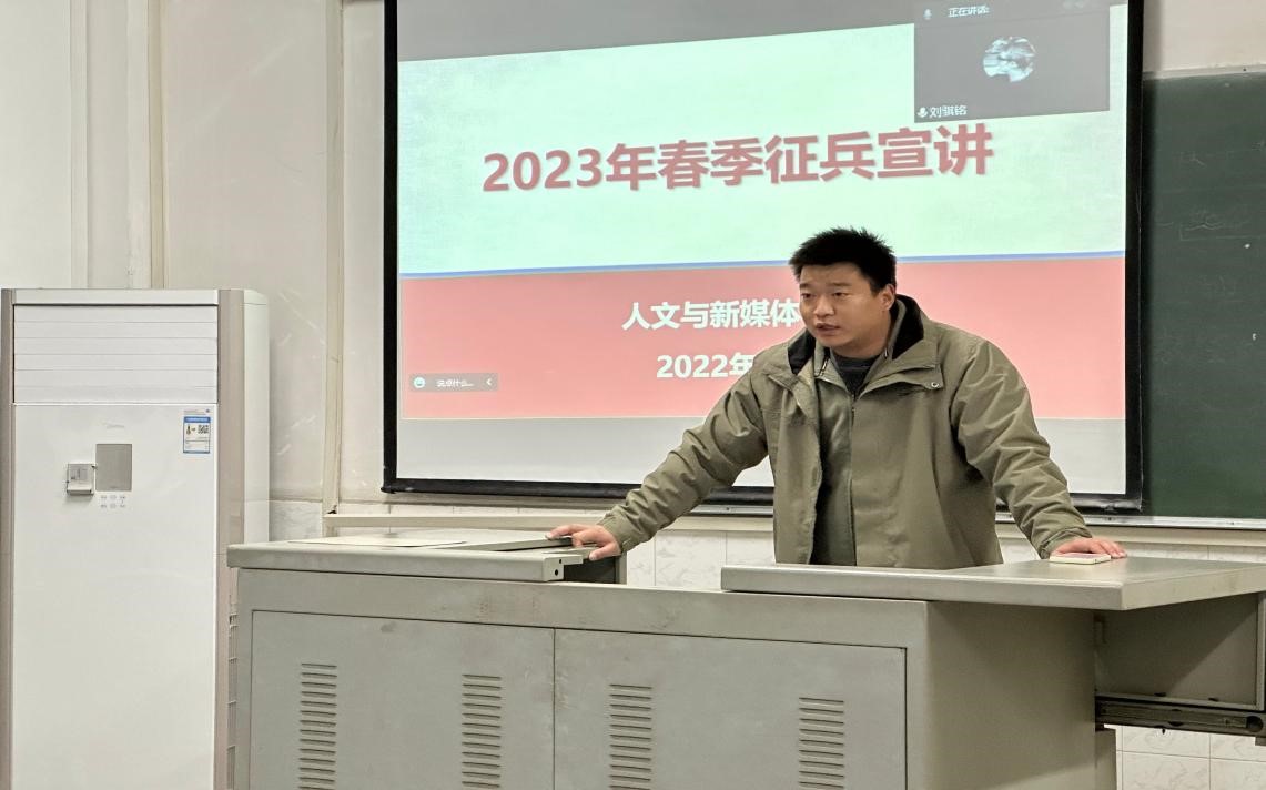 烽火照危旌,年少从军行。何惧风雨来,我辈请长缨。12月4日晚7时,william威廉中文在西区五教415教室顺利进行2023年春季征兵宣传活动。参会人员有22级全体新生以及学院高年级参军意愿的学生。特邀我院21级退伍士兵周杨和吴嘉怡同学分享军旅生涯和征兵政策宣讲。本活动由辅导员田华蓉、耿传令主持。