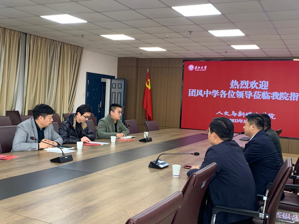 王书记对我院的热情接待表示感谢,并介绍了团风中学教师招聘相关需求以及人文学院校友目前在团风中学的工作及发展情况。随后,双方就教师培养与教师人才输送进行了具体讨论和深入交流。