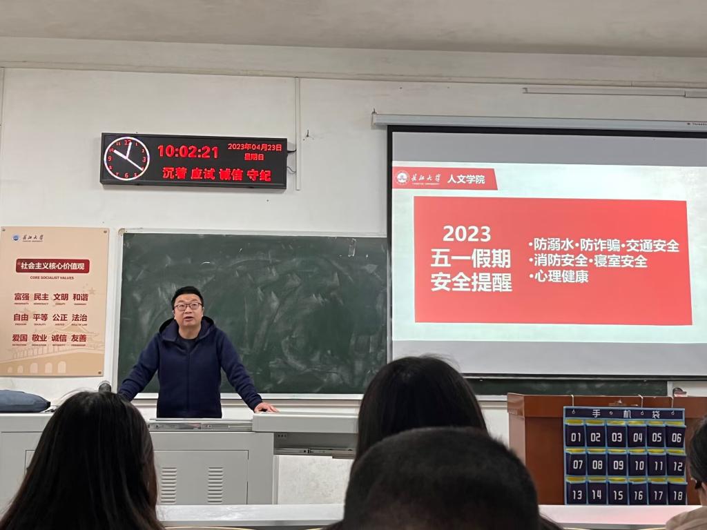 会议上,各班主任结合《关于做好2023年五一国际劳动节放假期间学生工作的通知》要求,从请假流程、出行安全、假期学习等方面为学生逐一讲解。班会期间,各班主任、班长重点开展了防溺水、防诈骗、交通安全、消防安全等安全常识教育,同时通过安全微视频、典型安全事故案例分享等形式,增强学生的自我防范意识,提醒同学们遵守校规校纪,严格按照学校的要求履行请假手续。部分留校学生要遵守学校的相关制度,按时归寝。同时,在劳动节来临之际,班主任号召同学们通过打扫卫生、志愿活动等主动进行劳动教育。